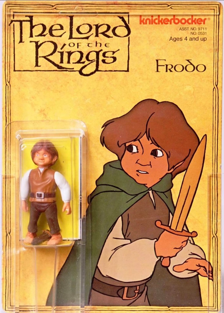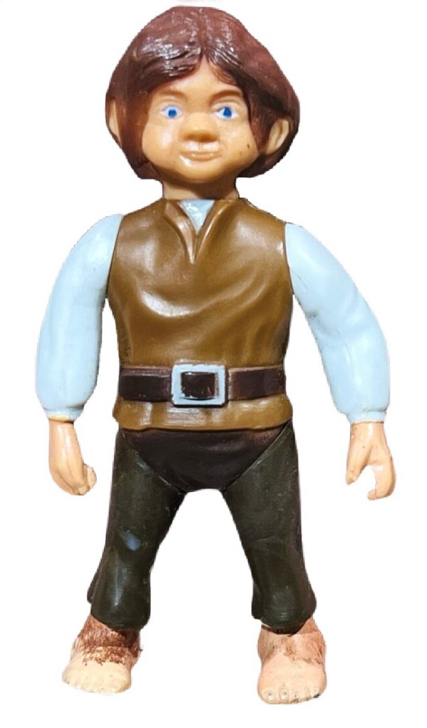 Notas: Con la voz de Christopher Guard en la película animada, Frodo se parece bastante a la versión animada, con pies peludos y una cabeza enorme. Frodo también viene con su vaina y espada desmontables.