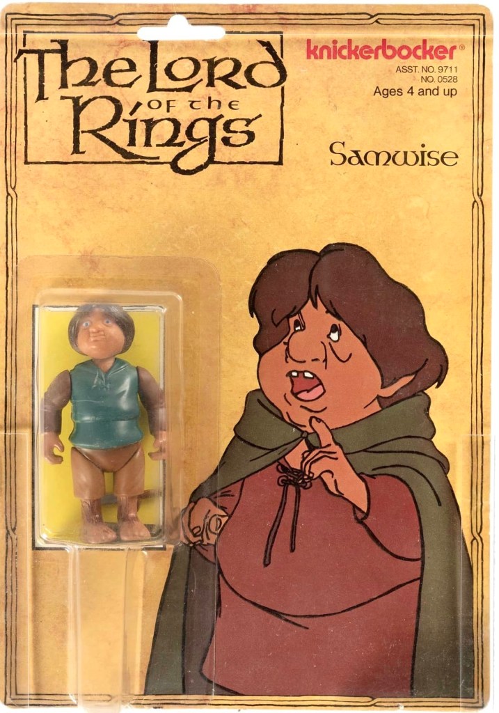 Notas: Al igual que su amigo Frodo, Samwise se parece bastante a su versión animada de la película, con pies peludos, cabeza enorme y todo lo necesario. Habría sido genial tener una Capa Élfica con la figura, pero no se puede tener todo. Samwise viene con su Vaina y su Espada.