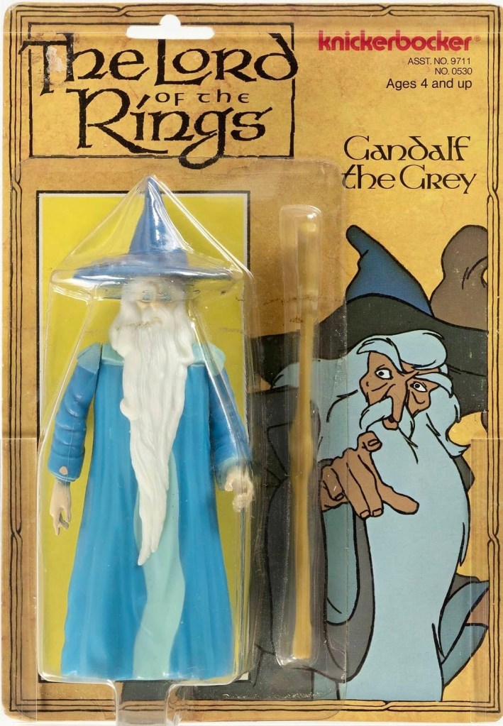 Notas: De todas las figuras de esta línea, Knickerbocker logró un parecido perfecto con Gandalf el Gris de la película animada. Esta es, de hecho, una de mis figuras favoritas de esta línea de juguetes. Gandalf viene con su Sombrero de Mago y Bastón extraíbles.