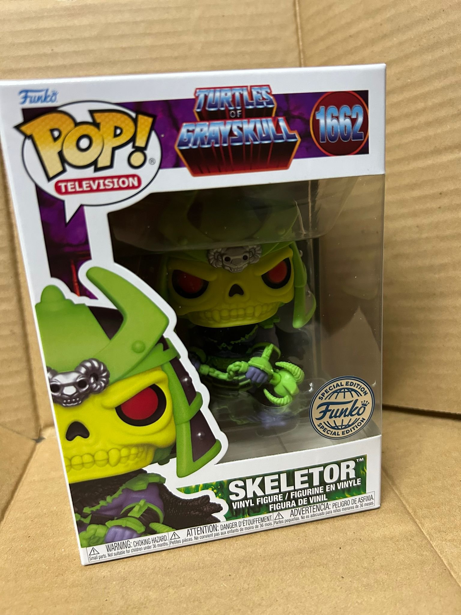 Prepárate para presenciar al Señor del Caos adoptando el espíritu ninja: esta figura Pop! Animation Skeletor #1662 es una edición exclusiva de Target Con, que fusiona el poder de Eternia con las sombras de Nueva York. Con su capa violácea y máscara de calavera, Skeletor empuña doble katana al estilo TMNT, creando un artefacto de colección imprescindible para expertos en cultura pop y crossover legendarios.